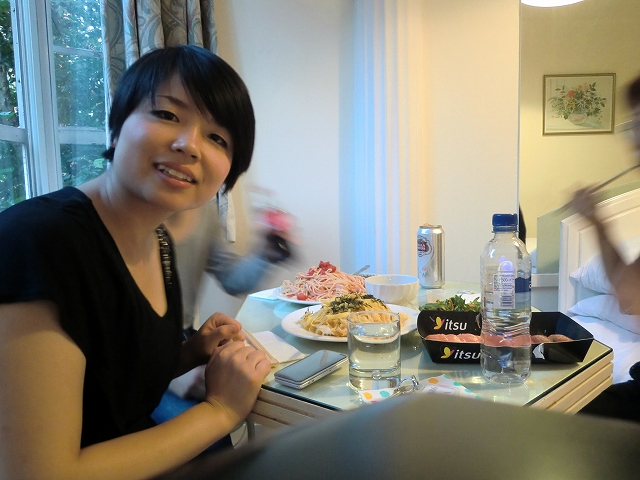 フットチーネやトマトパスタ。ロンドンで流行っているsushi!!!を囲んでお部屋パーティもしました