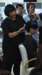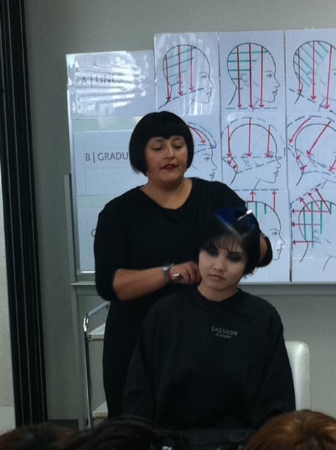 カットの理論、スタイルの成り立ち、似合い性などを勉強して、モデルを使ったデモンストレーションに入りました