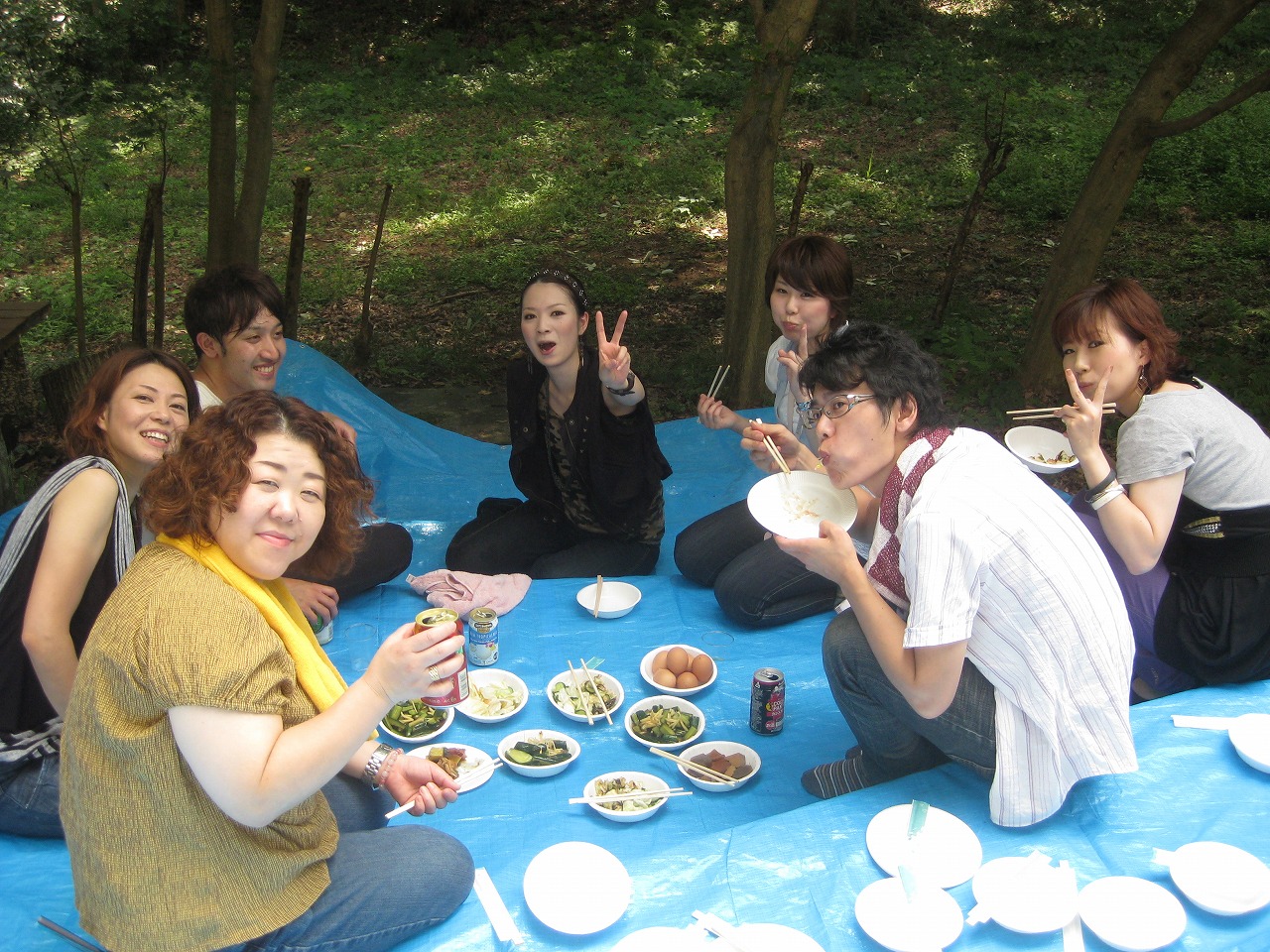 BBQが一段落すると、森の中を散策、お酒を片手に語り合うスタッフ、寝るスタッフ・・・